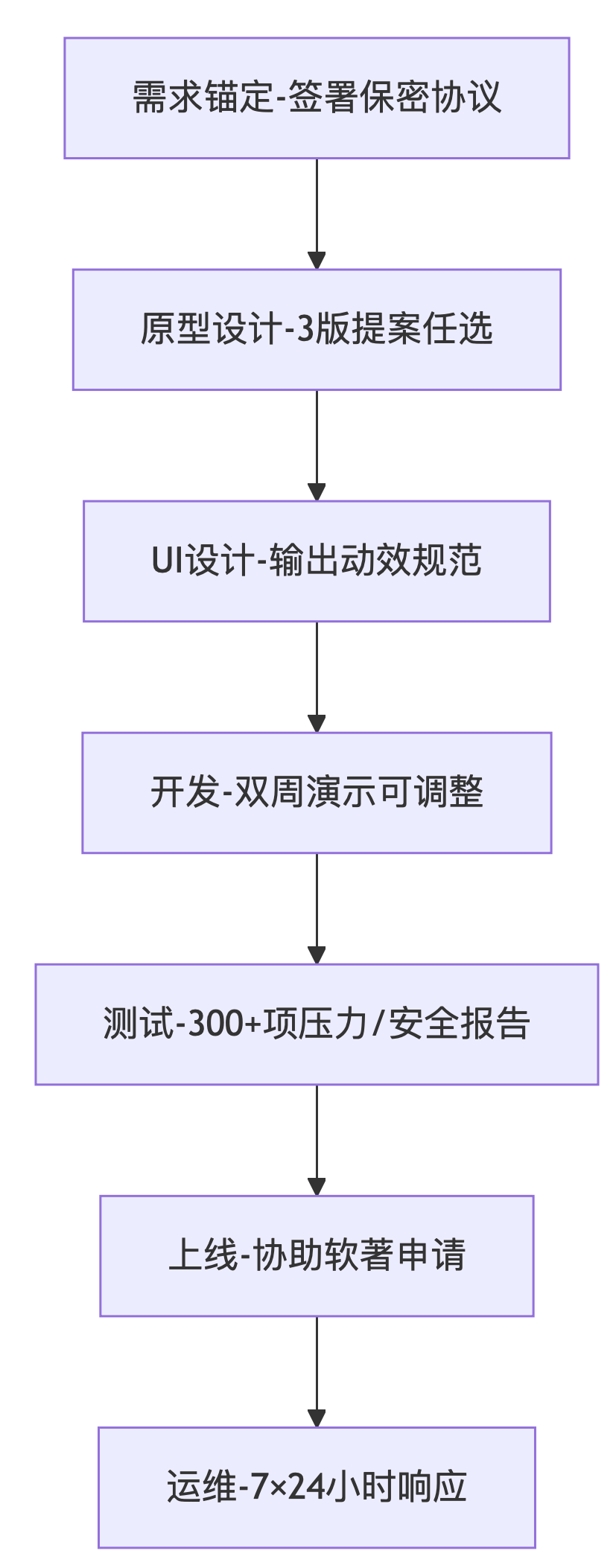 | 需求变更成本 | 按模块重新报价 | 人天单价透明增补 |